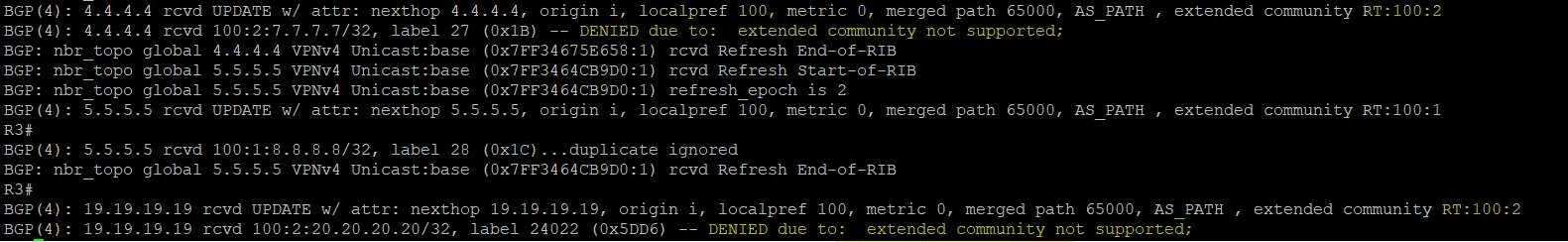 We turn on VPNv4 update debugging and refresh VPNv4 inbound on R3.
