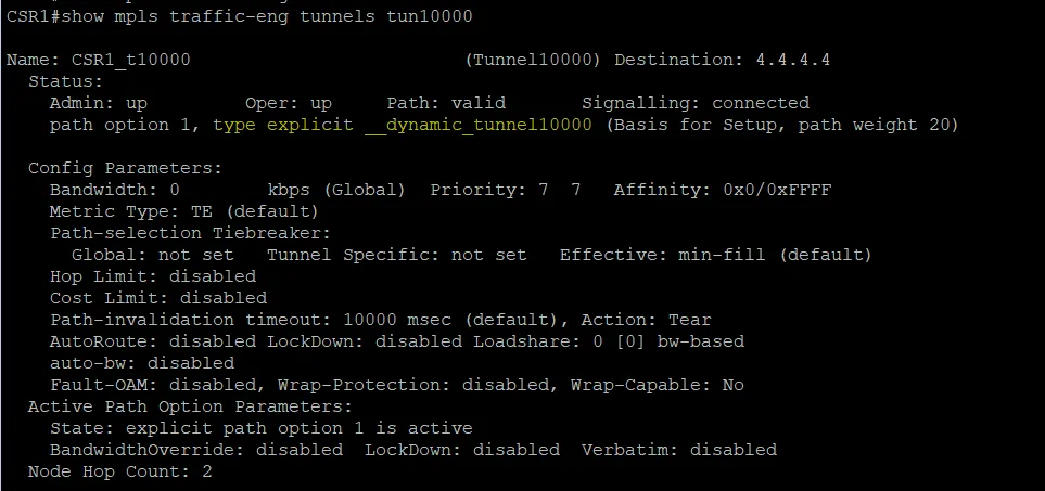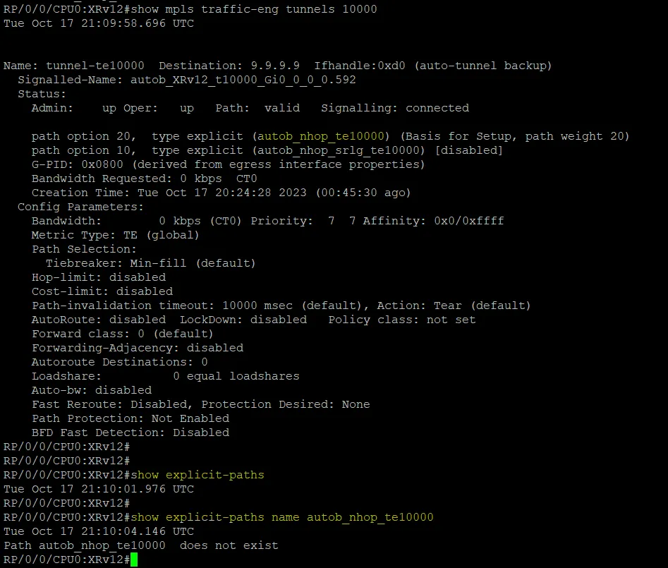 Notice that an explicit path was automatically created and applied to the tunnel10000 interface: